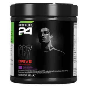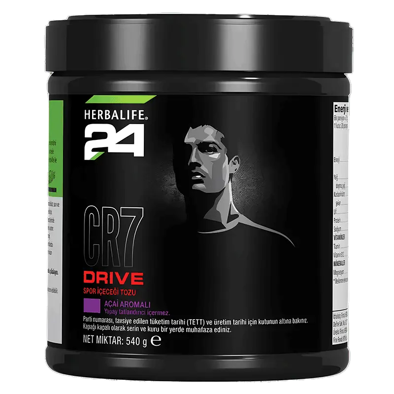 CR7 Drive Açai Aromalı 540g, Herbalife24®’ün Cristiano Ronaldo ile birlikte geliştirdiği, uzun süreli dayanıklılık ve performans için özel olarak formüle edilmiş bir spor içeceği tozudur. Bu ürün, yapay tatlandırıcı içermemekle birlikte, karbonhidrat ve elektrolit içeriği ile sporculara destek sağlar. Her porsiyon, günlük enerji ihtiyacınızı karşılamaya yardımcı olabilir.