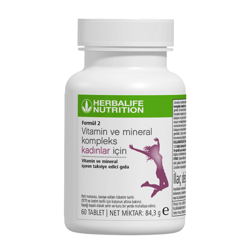 Formül 2 Vitamin ve Mineral Kompleks Kadınlar İçin, düzenli kullanıldığında hormonal aktivitenin düzenlenmesine, normal enerji üreten metabolizmaya, kemiklerin korunmasına ve cilt, saç, tırnak sağlığının desteklenmesine katkıda bulunabilir. Bu ürün, genel sağlığınızı desteklemek üzere özel olarak formüle edilmiş kapsamlı bir takviye edici gıdadır.