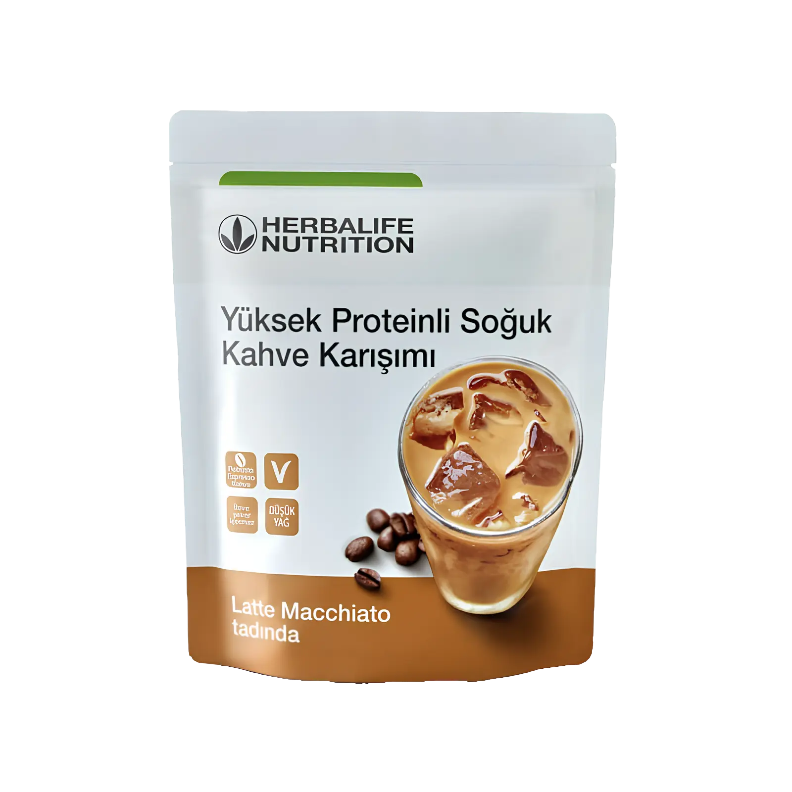 Yüksek Proteinli Soğuk Kahve Latte Macchiato, kahve tutkunlarına düşük kalorili ve yüksek proteinli bir alternatif sunar. Herhangi bir domuz yağı veya domuz türevi içermez.[/vc_column_text][/vc_column][/vc_row]